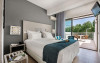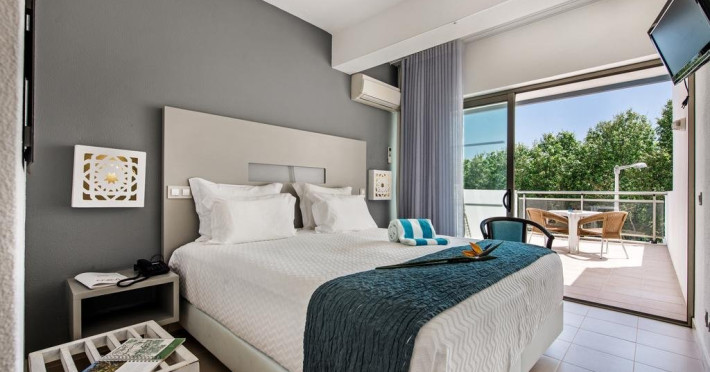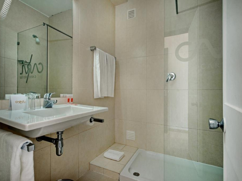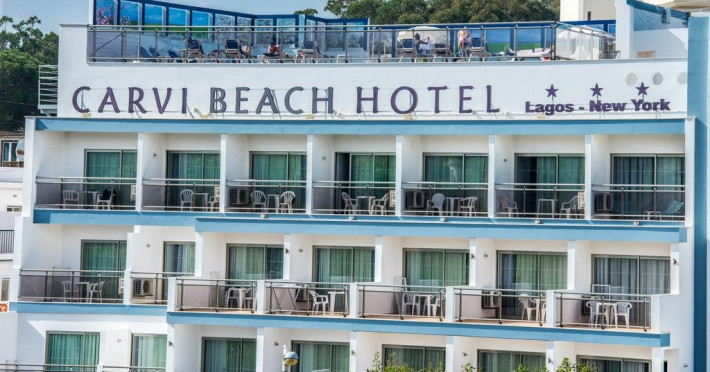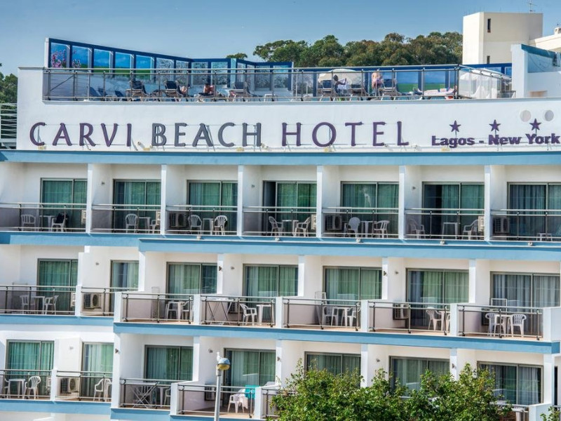 Hotel CARVI are canere duble cu vedere la gradina sau vedere laterala la mare si junior suite cu vedere frontala la mare. Toate camerele sunt dotate cu balcon, aer conditionat, TV LCD cu satelit, internet wireless gratuit, uscator de par, seif (cu plata 2 EURO/ zi), minibar (cu plata 5 EURO/ zi). Patul suplimentar pentru copii este pat pliant, dar exista si camere triple cu 3 paturi normale.