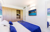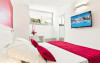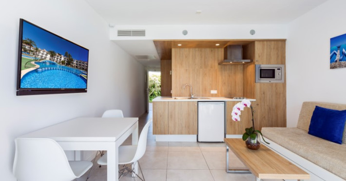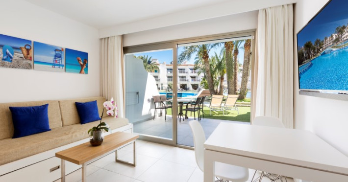 Constructed in a Mediterranean style, this air-conditioned apartment hotel underwent extensive renovations in 2003. The hotel comprises a total of 130 apartments spread over 2 floors and facilities include a foyer with 24-hour reception desk, safe, a currency exchange facility and a lift in addition to a small supermarket, a café, a bar, a games room and a restaurant with highchairs for infants. The hotel also features an Internet terminal with free WI-FI in all the complex including rooms, and a playground and kids club are on offer to the hotels younger clientele. Those arriving by car may take advantage of the car park. A laundry service completes the range of services on offer..The hotel is located in Palma Nova, just about 200 m from the beach. Palma Nova is about 10 minutes from Palma and can be reached from the airport within about 20 minutes..All apartments offer capacity for up to 4 people. The comfortable accommodation units provide a fully fitted bathroom with hairdryer as well as a combined living/ dining room with telephone and satellite TV. In addition they offer a fully equipped kitchen with microwave, toaster, kettle, ceramic stove top, fridge, freezer compartment and various cooking utensils. Each also has a terrace with a view of the swimming pool, as well as heating and air conditioning..American Express, MasterCard and VISA are accepted as methods of payment..The outdoor complex offers guests a swimming pool and a sun terrace with sun loungers and parasols. It is possible to make use of the massage service and participate in the aerobics sessions. Sports enthusiasts may like to try out billiards. An entertainment programme provides some variation for guests on a regular basis..service breakfast english breakfastDatorita dinamicitatii domeniului disponibilitatea ofertelor se modifica de la un moment la altul. De aceea ofertele sunt valabile in limita locurilor disponibile. Agentia nu este responsabila pentru eventualele neconcordante care pot aparea intre informatiile privind tarifele si alte detalii din site si informatiile primite in agentie. In aceste cazuri vor avea prioritate, intotdeauna, informatiile primite in agentie.