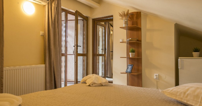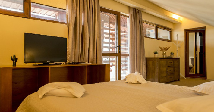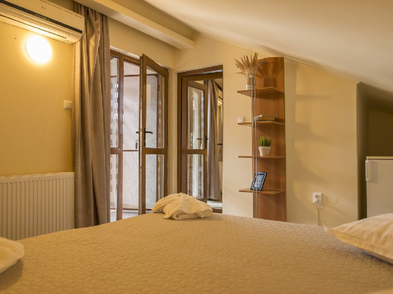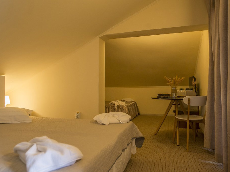 Camerele triple dispun de un pat matrimonial si un pat single sau o canapea extensibila, au balcon sau terasa, iar una din camerele triple se afla la mansarda.
