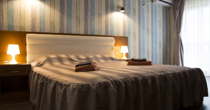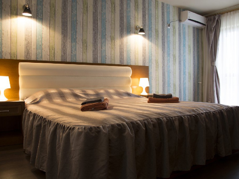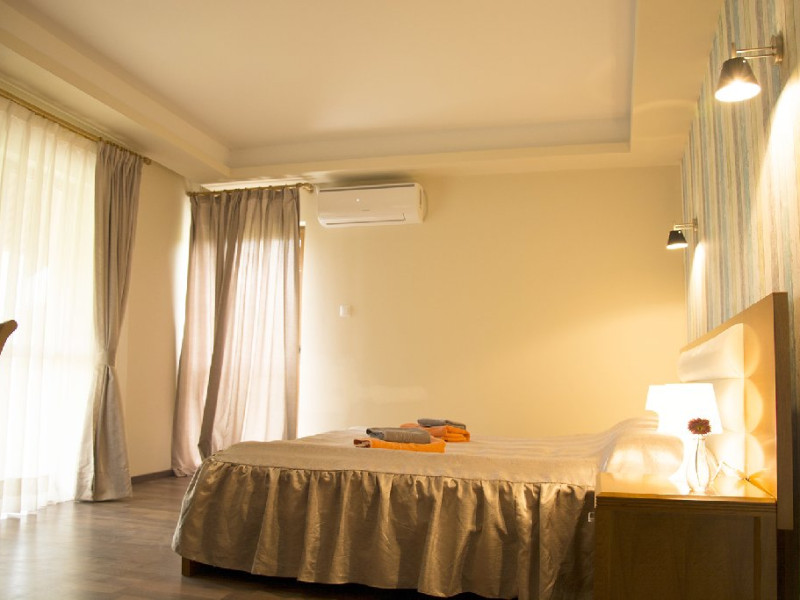 Apartamentul este situat la parter, dispune de o intrare separata si include un dormitor cu pat queen size si un living cu doua paturi twin, open space si chicineta.