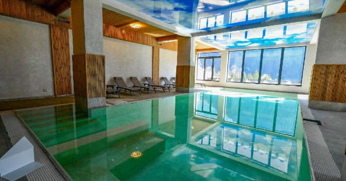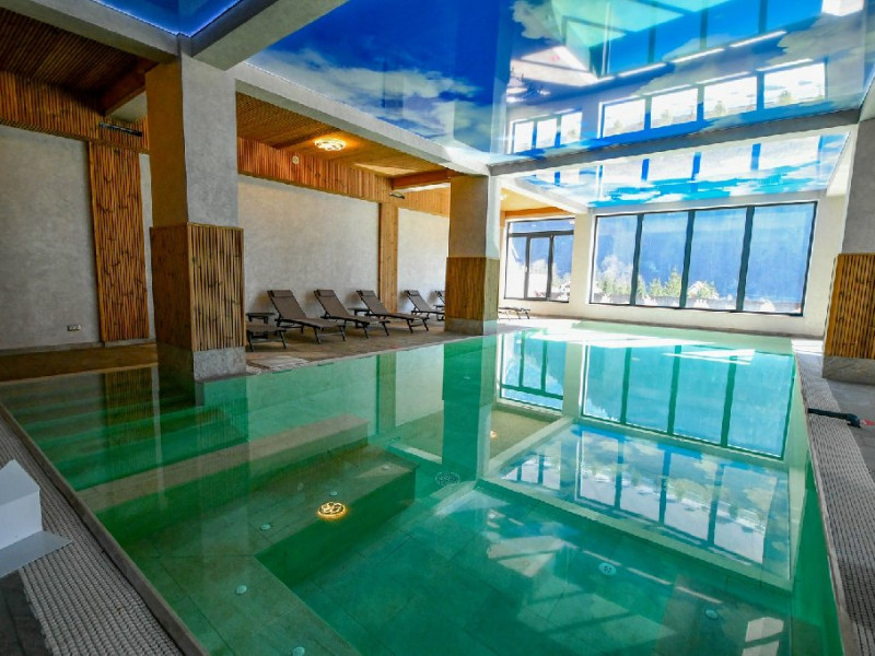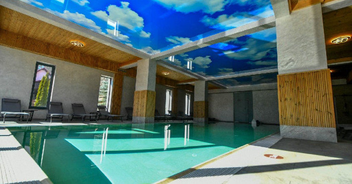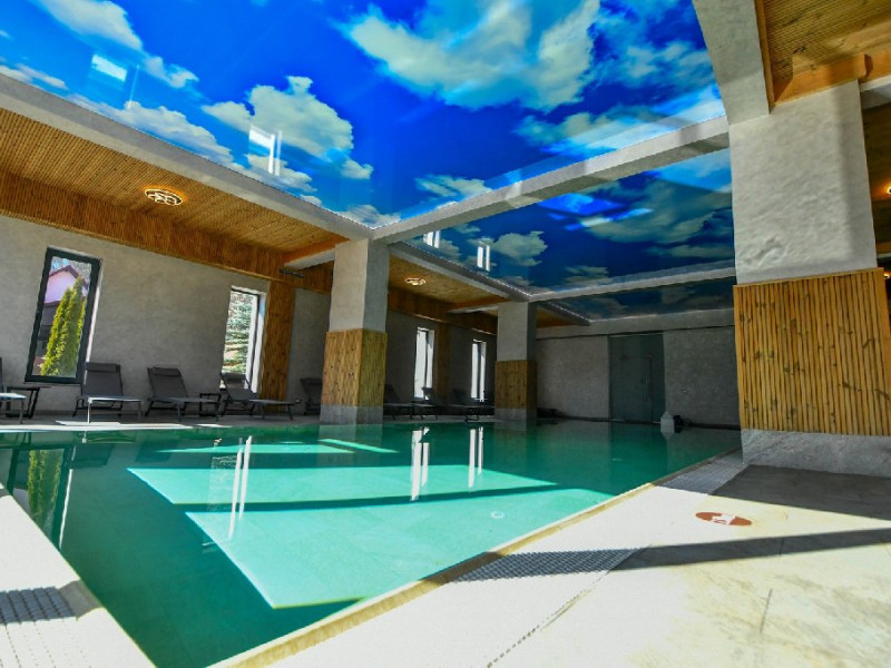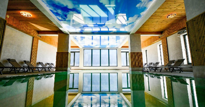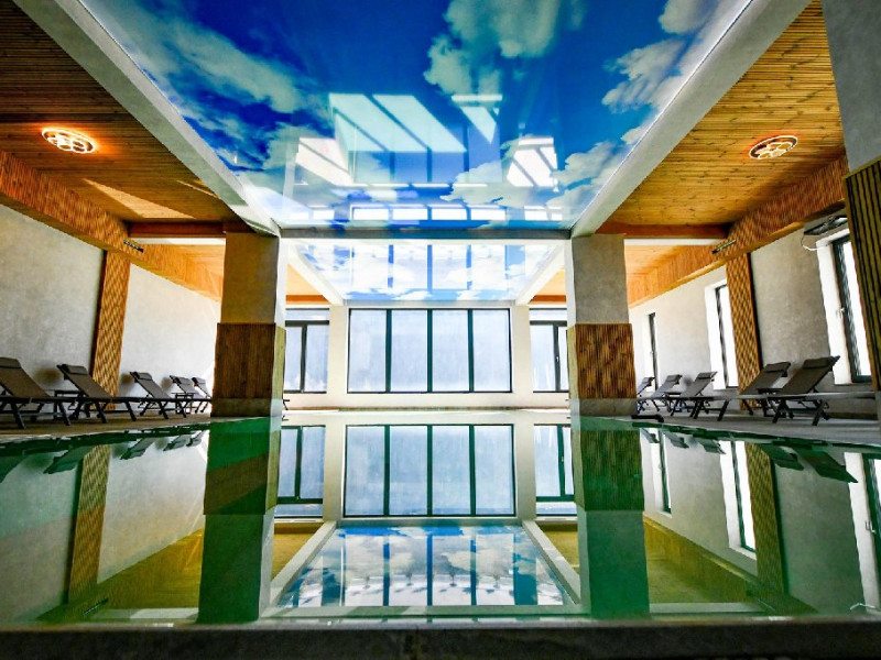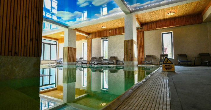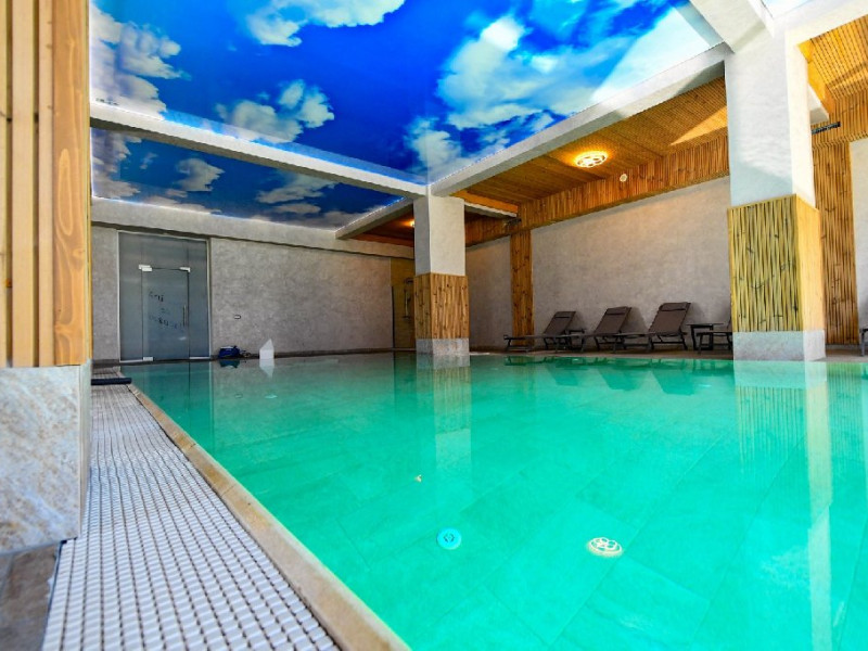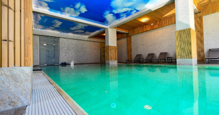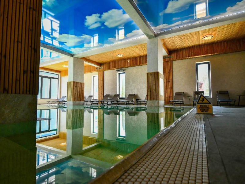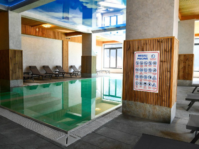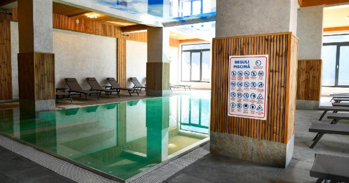 * relaxare in zona SPA, ce include piscina interioara incalzita si saune