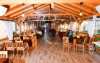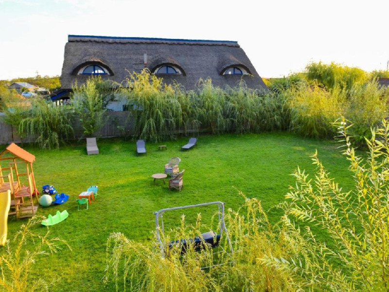 Turistii pot petrece timpul relaxandu-se la piscina in aer liber, savurand preparate traditionale dobrogene in restaurantul cu specific pescaresc.