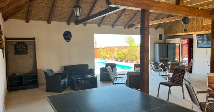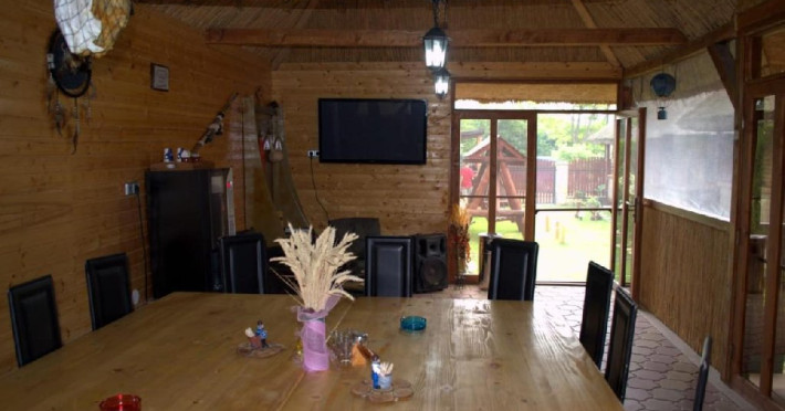 Patru casute a cate doua camere,fiecare casuta cu baie proprie si un salon spatios plus o bucatarie mare,utilata complet, gratar mare cu plita,o gradina,loc de joaca pentru copii,o piscina cu capacitate de douazeci de persoane.Locatia este in localitatea Visina la un km de Jurilovca locul de imbarcare spre Gura Portitei.