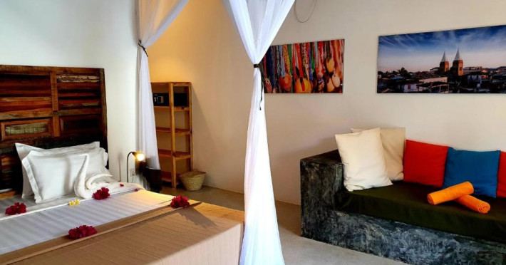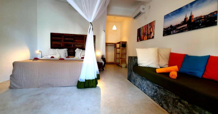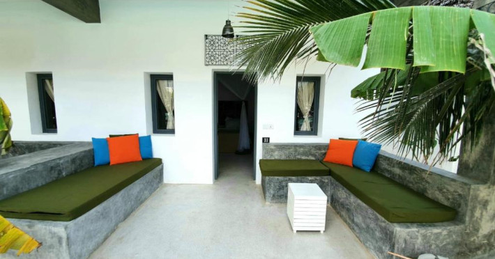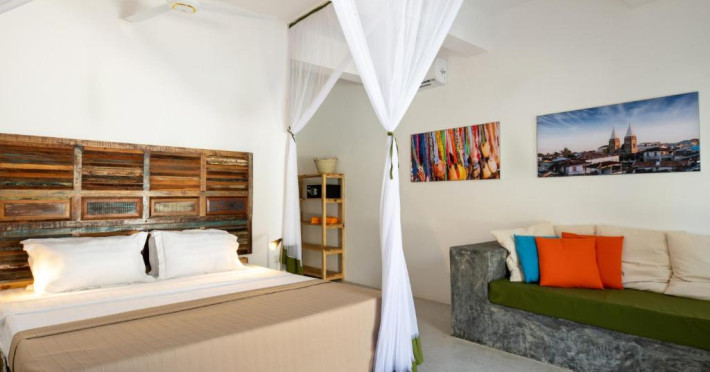 Camerele au balcon și intrare privată, zonă de relaxare și plase de țanțari deasupra paturilor. Băile private au duș.