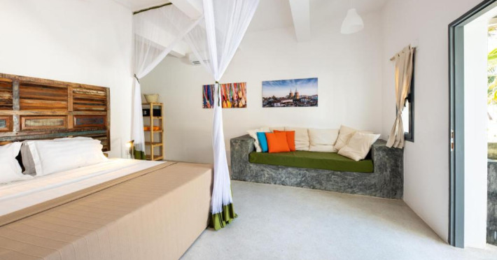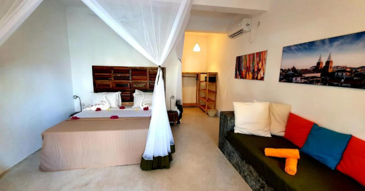 Cele 11 camere spatioase de la parter sunt potrivite pentru pana la trei oaspeti, cu optiunea de paturi duble sau twin. Aceste camere sunt la cativa pasi de o veranda privata si de piscina. Camerele sunt dotate cu aer conditionat, plasa de tantari, ventilator si canapea. Bucurati-va de cele 11 camere mari si spatioase cu aer conditionat, ventilator, plasa de tantari si balcon privat de la primul etaj. Camerele sunt potrivite pentru pana la trei oaspeti, cu o canapea extensibila dubla (optionala).