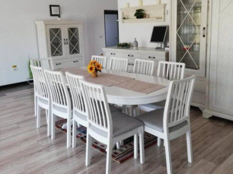 un living foarte generos cu loc de luat masa si o bucatarie complet utilata.