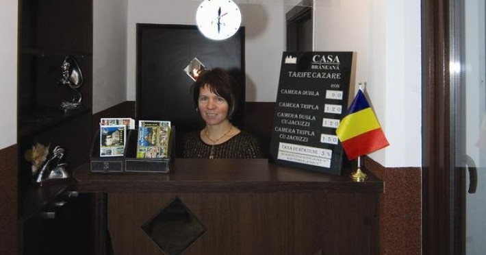 Aflata in comuna Moeciu, la numai 1,7 km distanta fata de Castelul Bran, Casa Braneana ofera cazare in camere spatioase si moderne, fiecare camera avand o schema cromatica aparte pentru a inveseli sejurul oaspetilor sai. Muzeul Satului Branean se afla la o distanta de 1,6 km fata de pensiune. Turistii pot face drumetii la Pestera Liliecilor, aflata la o distanta de 7,8 km fata de pensiune. Clasificata la categoria de 3 stele, Casa Braneana ofera cazare in 14 camere duble si triple, spatioase si confortabile. Camerele sunt dotate cu baie proprie cu dus sau cada, uscator de par, incalzire centrala, TV si mini-bar. Unele camere sunt dotate cu jacuzzi si balcon. Accesul la Wi-Fi este disponibil gratuit in toata locatia. Pentru prepararea si servirea micului dejun, pensiunea ofera o bucatarie comuna complet utilata, precum si o sala de mese. Pentru intalnirile corporate exista o sala de conferinte in incinta pensiunii. Oaspetii au acces gratuit la parcare. Suplimentar, Casa Braneana ofera si gratar, curte pavata, sala de fitness, masa de biliard, masa de ping-pong si drumetii in zona.Datorita dinamicitatii domeniului disponibilitatea ofertelor se modifica de la un moment la altul. De aceea ofertele sunt valabile in limita locurilor disponibile. Agentia nu este responsabila pentru eventualele neconcordante care pot aparea intre informatiile privind tarifele si alte detalii din site si informatiile primite in agentie. In aceste cazuri vor avea prioritate, intotdeauna, informatiile primite in agentie.