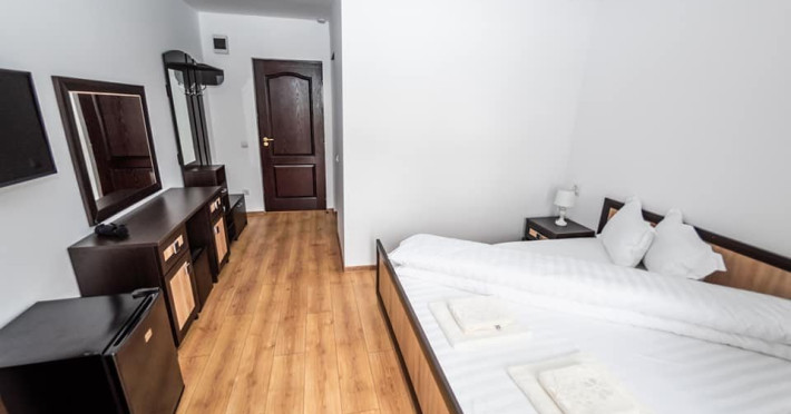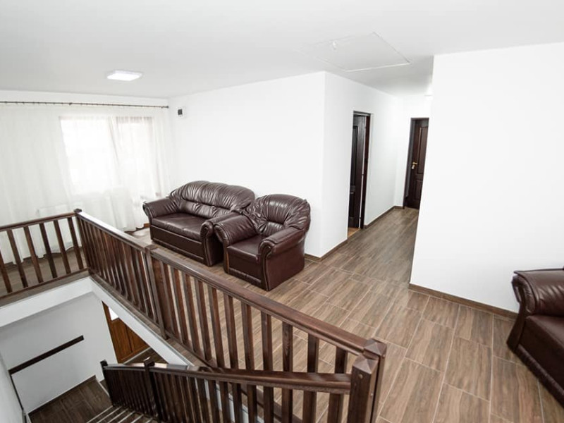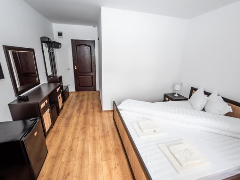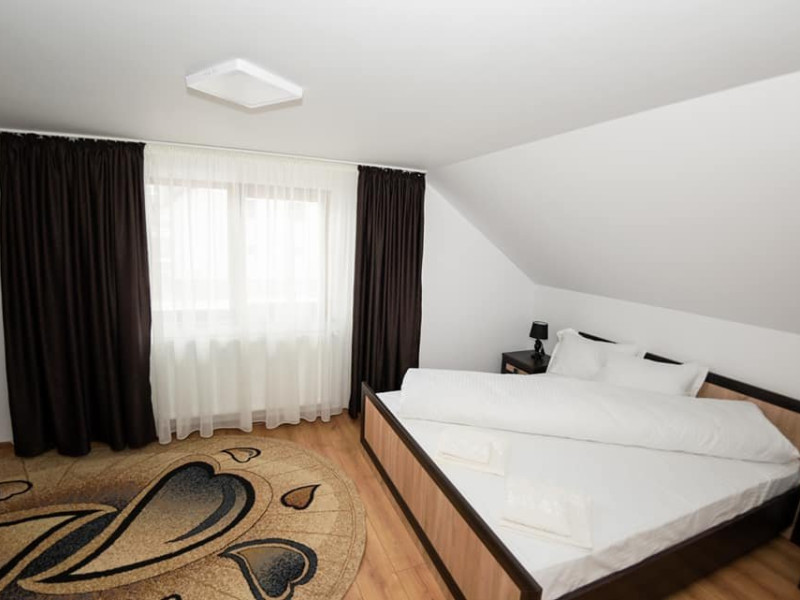 Pensiunea are 8 camere duble, 1 camera single si un apartament cu 3 camere.