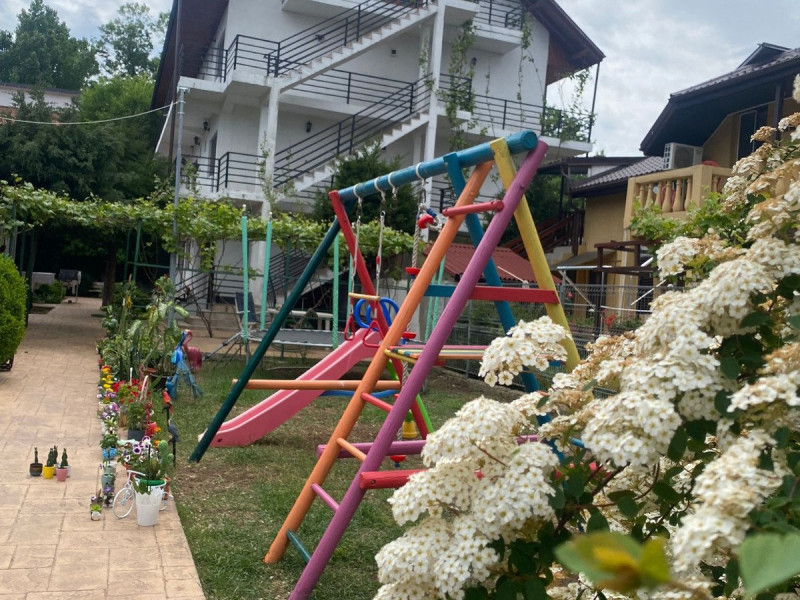 Asezata ideal in mijlocul padurii, intr-o zona protejata de agitatia statiunii, Casa Carina va va surprinde prin facilitatile oferite si va asteapta pentru momente memorabile. Casa se afla la doar 7 minute de mers pana la plaja. 30 de camere curate cu bai proprii sterilizate clasificate la 3 stele. Spatiu decent va asigura linistea si odihna bine meritata dupa o zi de plaja. Priveliste superba catre padure. Foisor complet echipat pentru serile prelungite de vara, unde puteti asculta muzica in timp ce va puteti privi copiii jucandu-se la locul de joaca. Va puteti prepara felurile de mancare preferate la aragazul cu sase ochiuri si cuptor. La dispozitie aveti vesela, tacamuri, ustensile si electrocasnice pentru cina sau mic dejun, frigider si in foisor pentru depozitarea propriilor alimente. Puteti incalzi sau prepara micul dejun sau cina la cuptorul cu microunde situat in foisor. Scaune pentru copii disponibile. Gratarele sunt situate in curte. Toate camerele beneficiaza de baie proprie, TV, frigidere, Internet Wireless gratuit. Se ofera serviciu wireless pe toata suprafata pensiunii, cu trafic nelimitat. Va puteti folosi gratuit de masa si fier de calcat. Va putem pune la dispozitie sah, table, remy, carti de joc. Este acea zona care iti reda energia in corp si curiozitate in suflet. Ètim ca cel mai important lucru intr-o calatorie este emotia pe care o simti in fiecare zi, iar aceasta emotie se datoreaza experientelor pe care le traiesti cu trup si suflet. Cele mai frumoase vacante sunt acelea pe care le resimti atunci cand inchizi ochii.Datorita dinamicitatii domeniului disponibilitatea ofertelor se modifica de la un moment la altul. De aceea ofertele sunt valabile in limita locurilor disponibile. Agentia nu este responsabila pentru eventualele neconcordante care pot aparea intre informatiile privind tarifele si alte detalii din site si informatiile primite in agentie. In aceste cazuri vor avea prioritate, intotdeauna, informatiile primite in agentie.