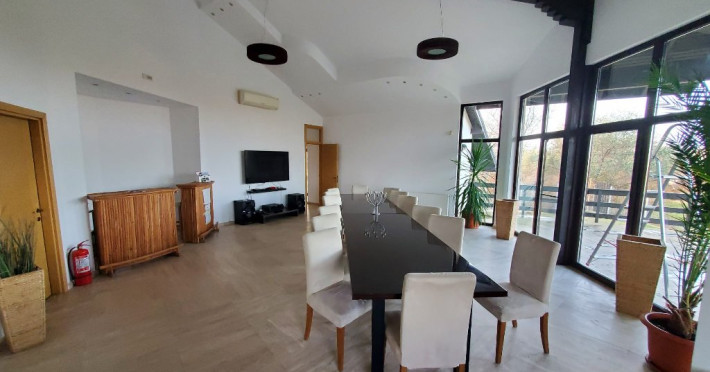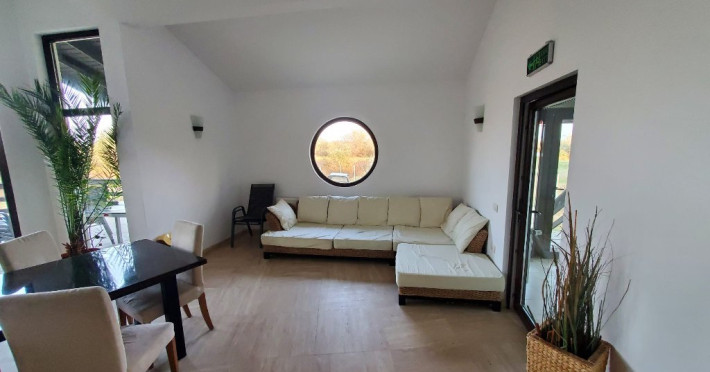 Livingul este deschis ctre o terasa unde te poti bucura de aerul curat si poti admira peisajul. Terasa este dotat cu mas si scaune din lemn ce pot fi utilizate de cei ce doresc s ia micul dejun in aer liber.