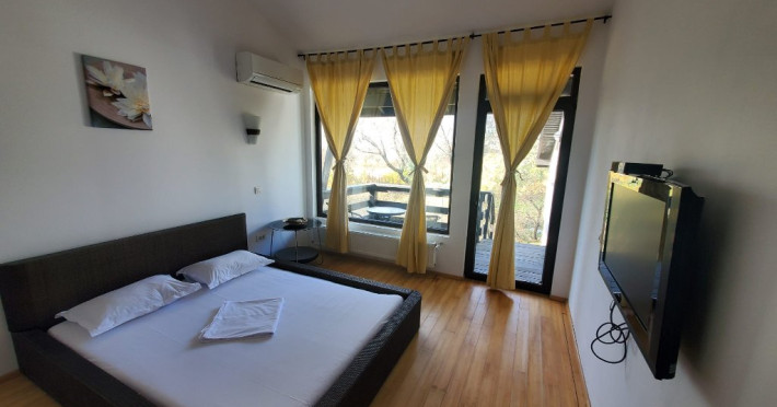 Dormitoarele sunt spatioase, dotate cu un pat matrimonial, televizor LCD si aer conditionat. Fiecare dintre acestea are baie si teras proprii. Terasele au mobilier de exterior.