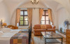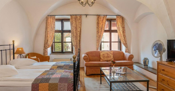 Camerele sunt situate la etajul 2 sau la mansarda si includ acces gratuit la internet WiFi, TV prin satelit, telefon, podea din lemn si baie privata. Pentru un cost suplimentar, oaspetii au la dispozitie o parcare privata, situata la 500 de metri, in partea de jos a orasului, In afara cetatii.