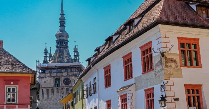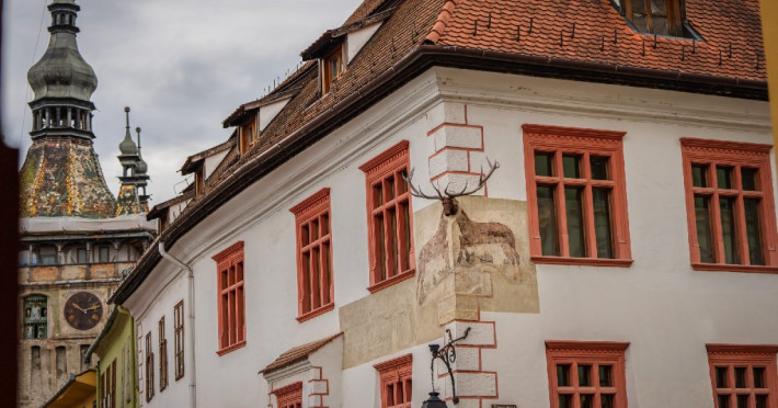 Casa cu Cerb este situata intr-una dintre cele mai vechi cladiri din Sighisoara, fiind denumita dupa pictura murala de pe fatada, care reprezinta un cerb.Proprietatea se afla la 110 metri de Turnul cu Ceas si la 100 de metri de Piata Muzeului.