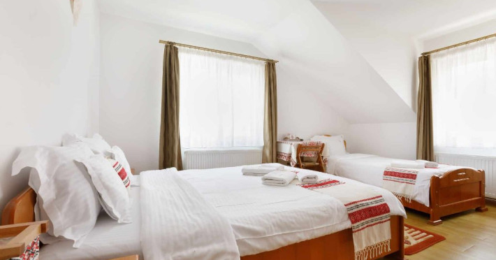Camera tripla dispune de un pat matrimonial 160 x 200 cm si un pat single 100 x 200 cm.