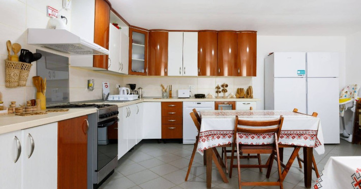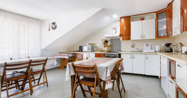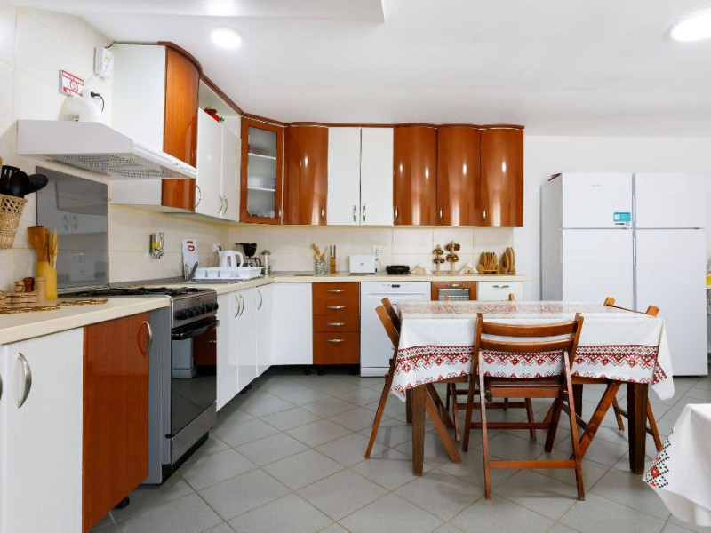 Turistii au la dispozitiei bucataria comuna complet utilata.