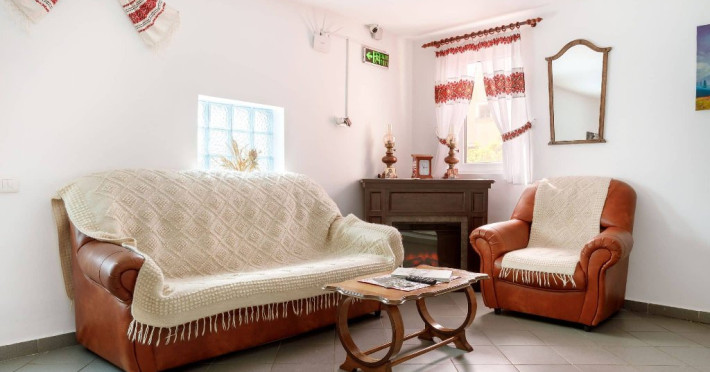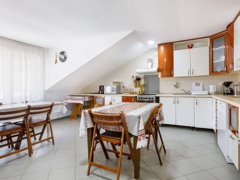 Locatia dispune de o bucatarie complet utilata de 23 mp, in care modernul cu traditionalul se imbina armonios, un living mic cu semineu situat la etaj, o baie de serviciu, incalzire cu centrala proprie pe gaz, internet Wi-Fi, parcare.