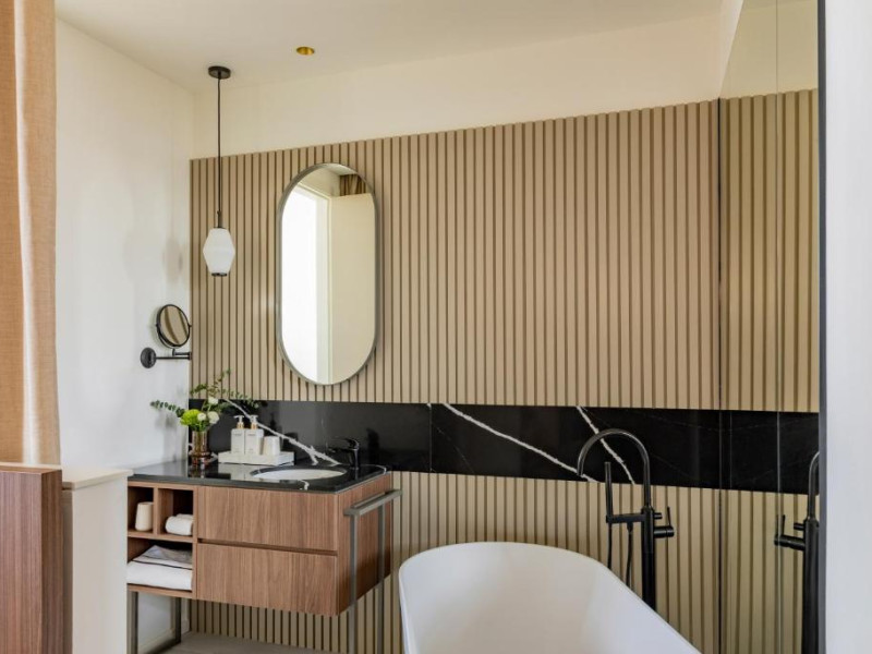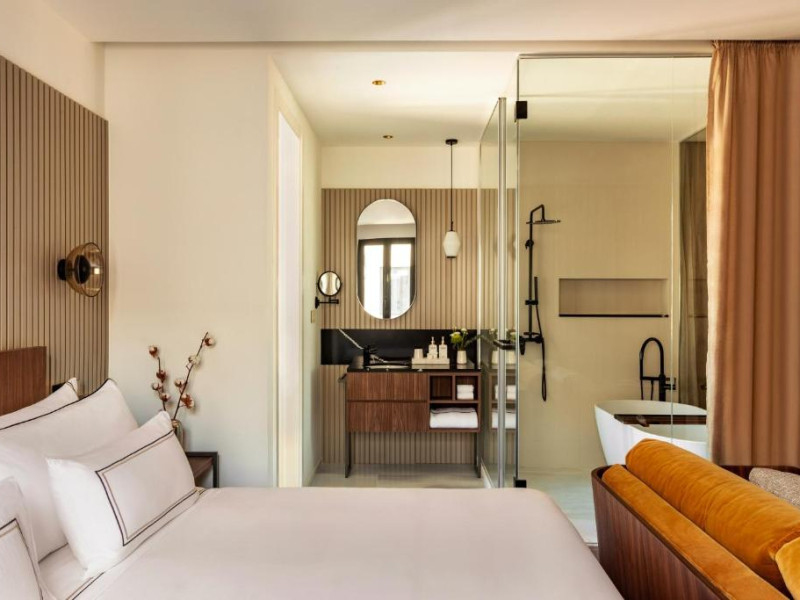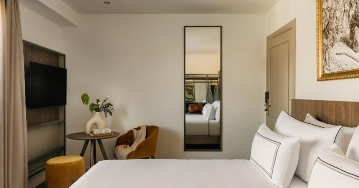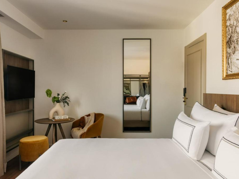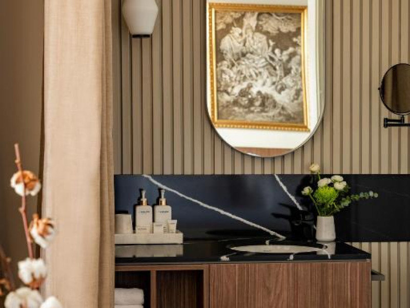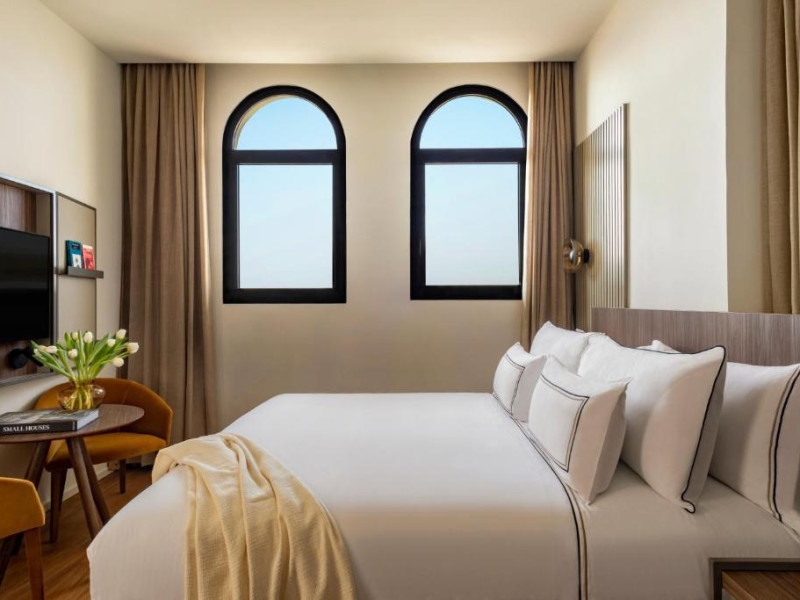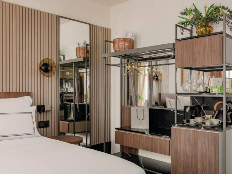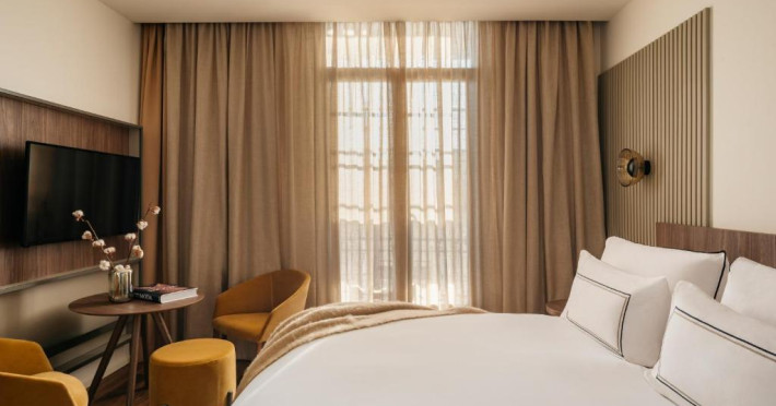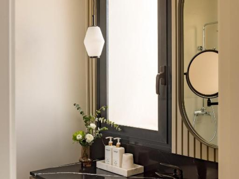 Fiecare cameră are baie privată, unele cu terasă, iar altele cu vedere la oraș.