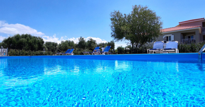 The beautiful (non-chemical eco cleaning system) fresh water swimming pool and poolside area, are the best place to relax during the day and enjoy the warm Greek sun!