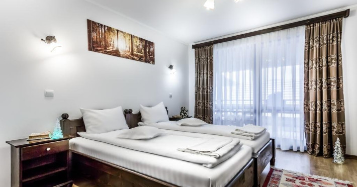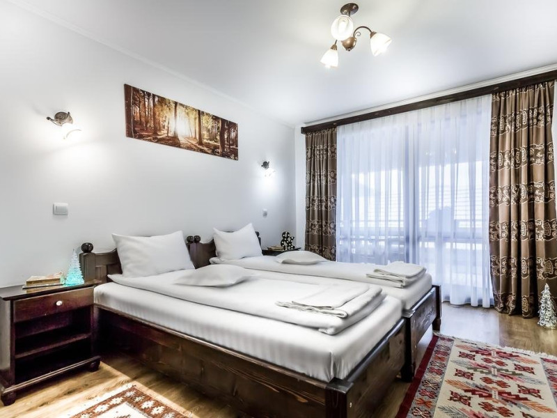 4 camere duble cu bai proprii ( 2 camere cu pat matrimonial + 2 camere cu doua paturi)