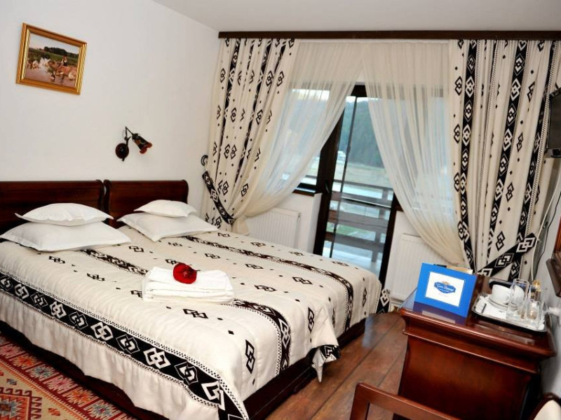 Toate camerele ofera o priveliste de neuitat spre munte.De la orice geam se vede padurea.fermecatoare in orice anotimp si se aude odihnitor al raului Moldova care trece chiar prin spatele pensiunii.