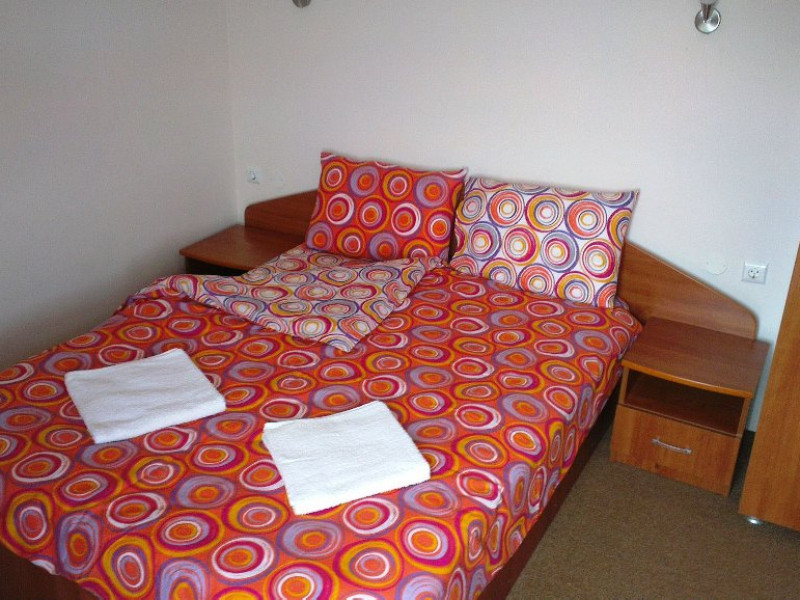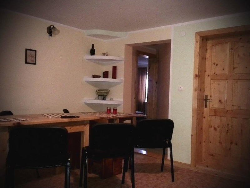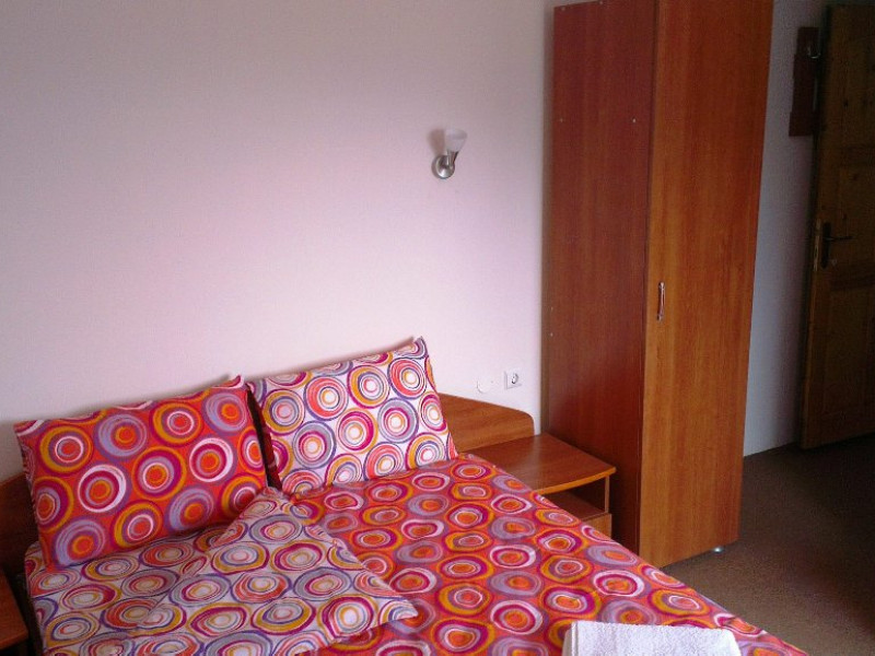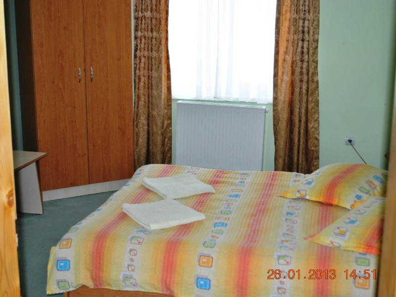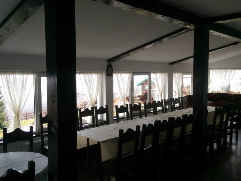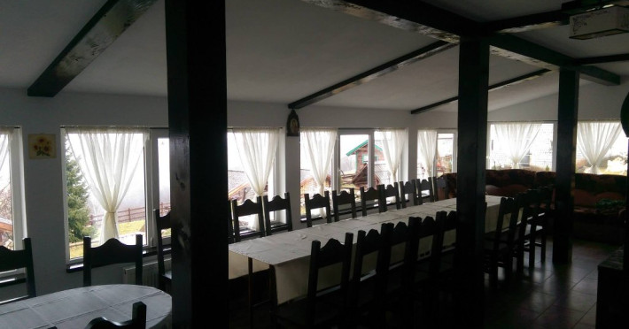 (fiecare cu baie), bucatarie utilata pentru pregatirea minuturilor, sala de mese spatioasa capacitate 40 locuri, curte foarte spatioasa, loc de joaca pentru copii (trambulina, leagane, casuta, loc cu nisip, masa de ping - ping), foisoare unde se poate servi masa , gratar, balansuare, sezlonguri.