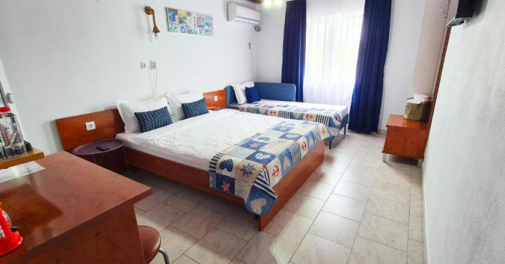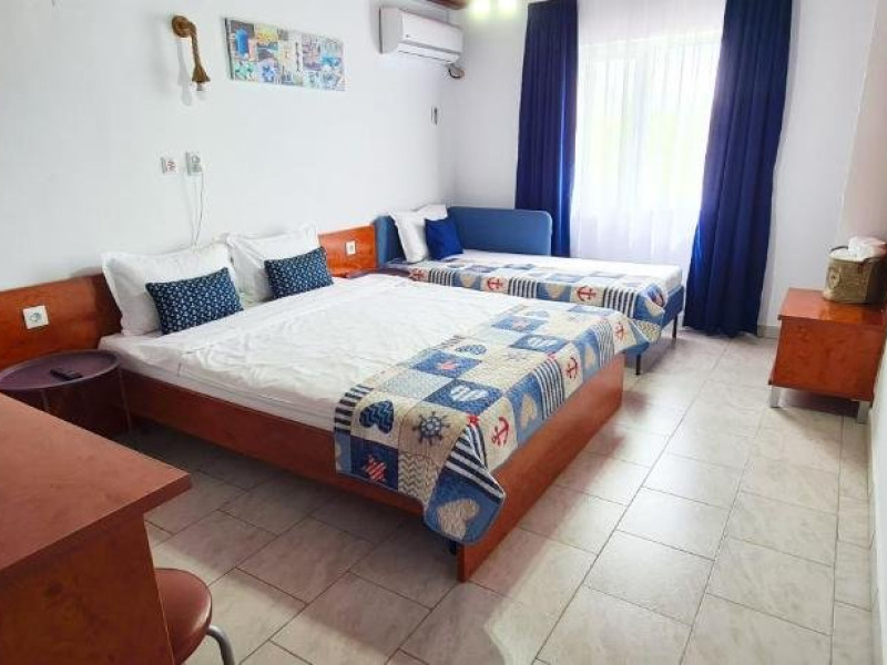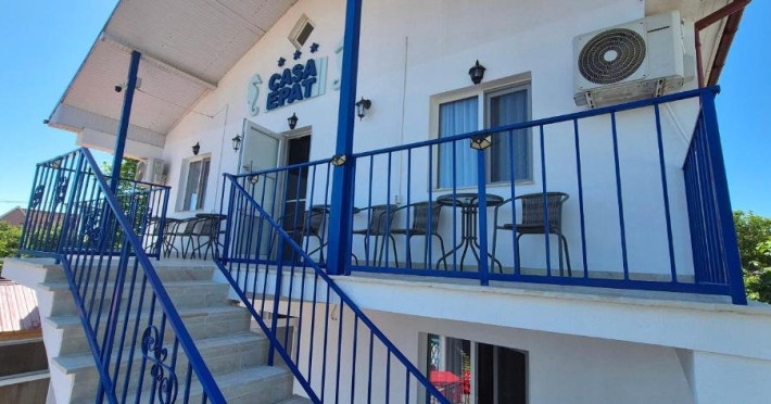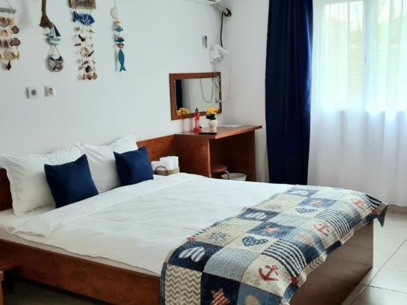 Fiecare camera este amenajata cu grija, oferind bai private, internet de inaltaviteza, aer conditionat, minibar, uscator de par, TV LED si produse de igienade calitate. Relaxati-va in foisorul nostru, bucurati-va de o bucatarie de varacomplet utilata, savurati gratarul si beneficiati de 6-7 locuri de parcare, infunctie de disponibilitate. Plaja este la doar 5 minute de plimbare, facandu-nelocatia perfecta pentru grupuri sau familii cu copii in cautare de distractiesi confort.