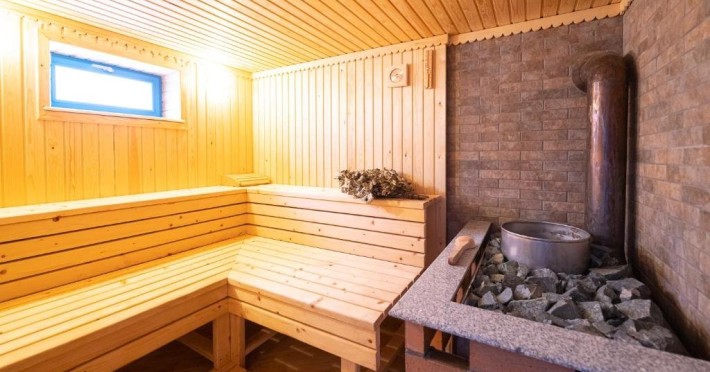 Facilitati generale : terasa amenajata cu mese si scaune, gradina,sauna,echipament de badminton