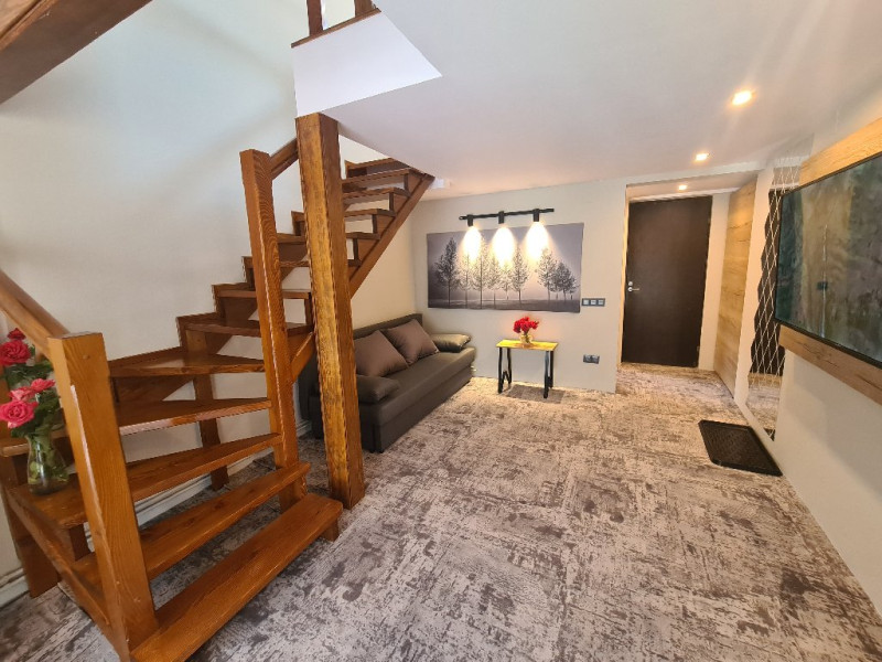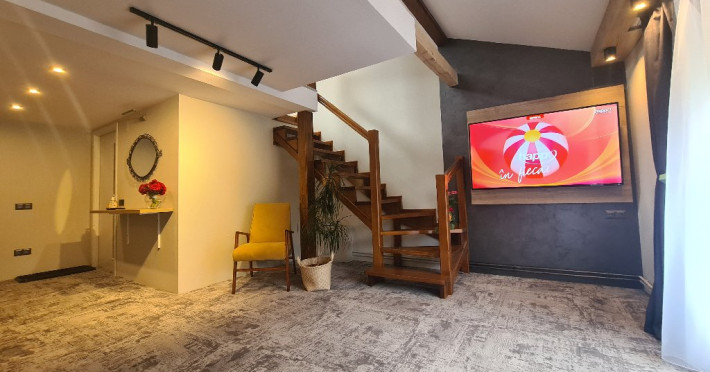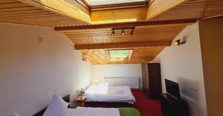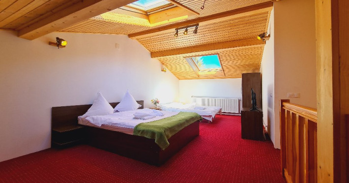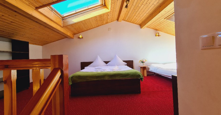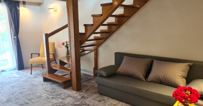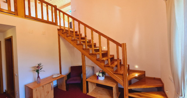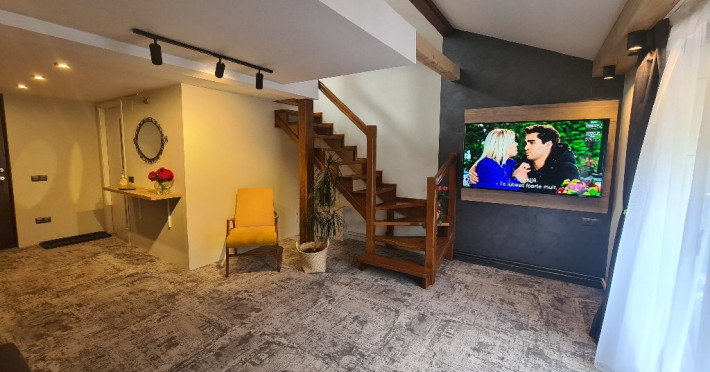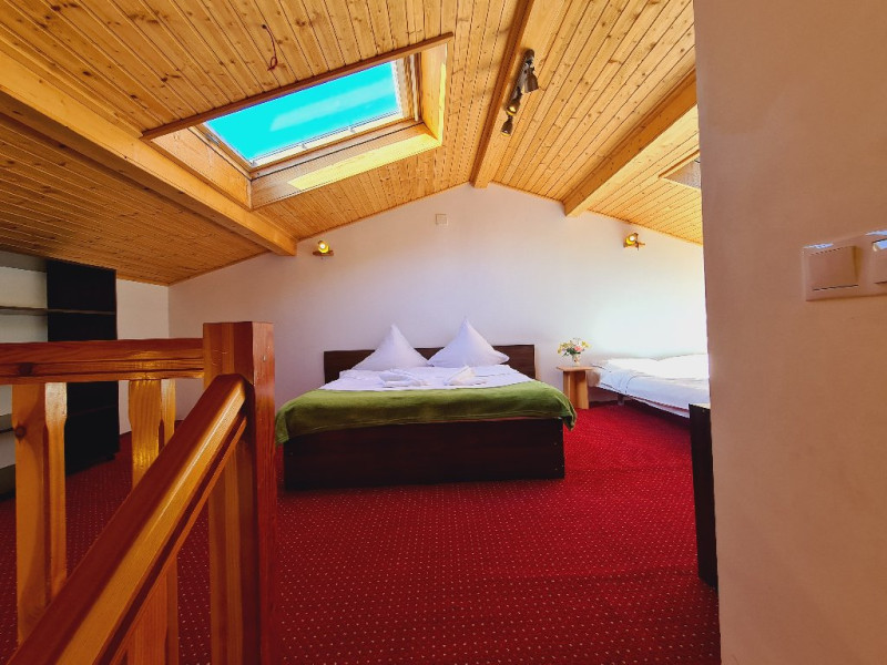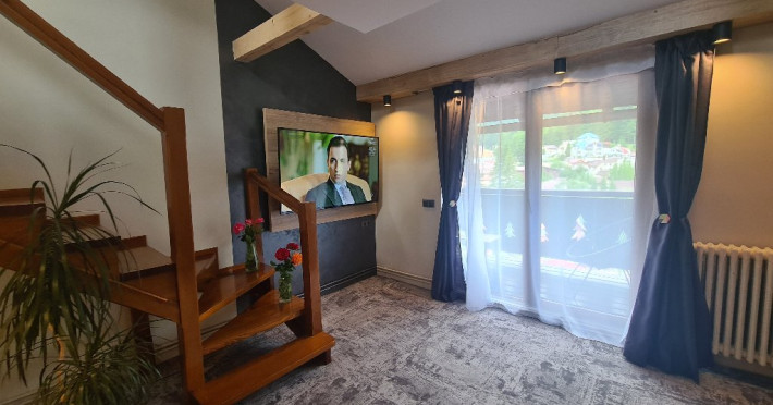Suita family dispune de living cu canapea extensibila iar la etaj se afla doua paturi twin.