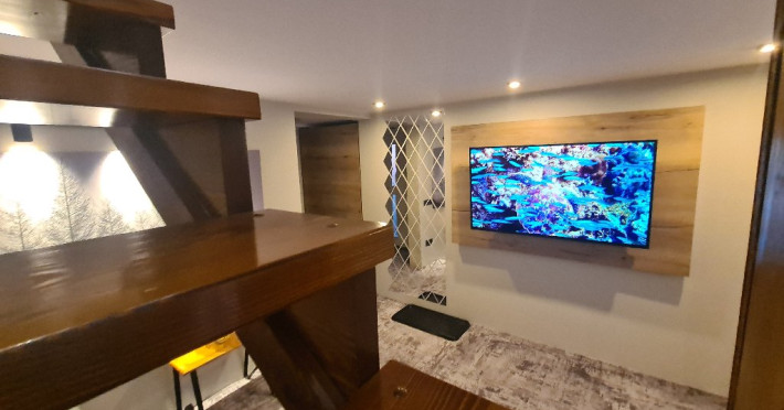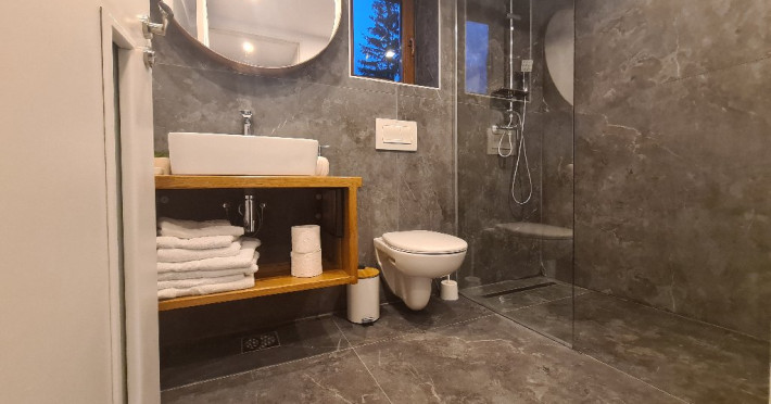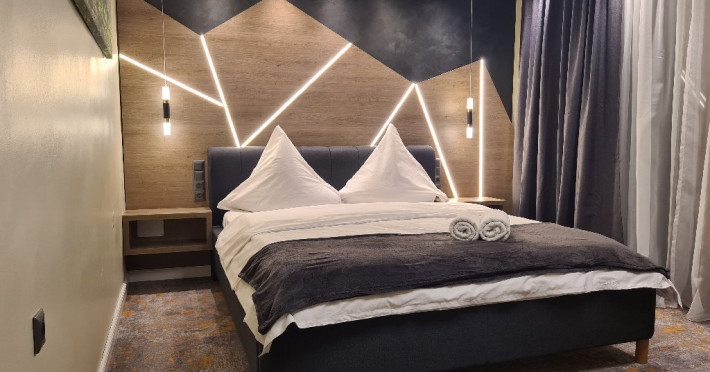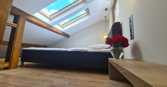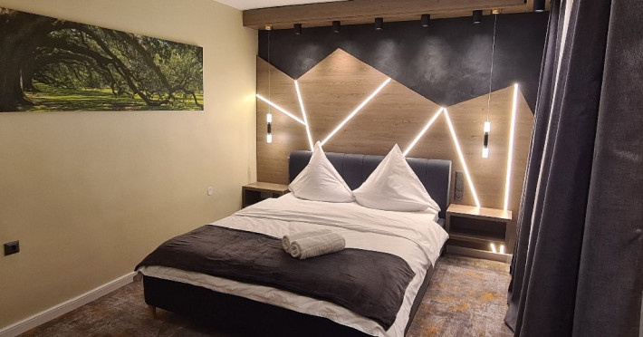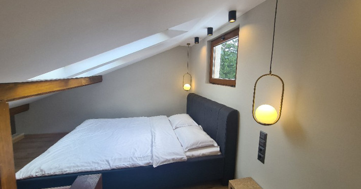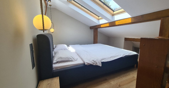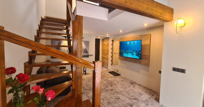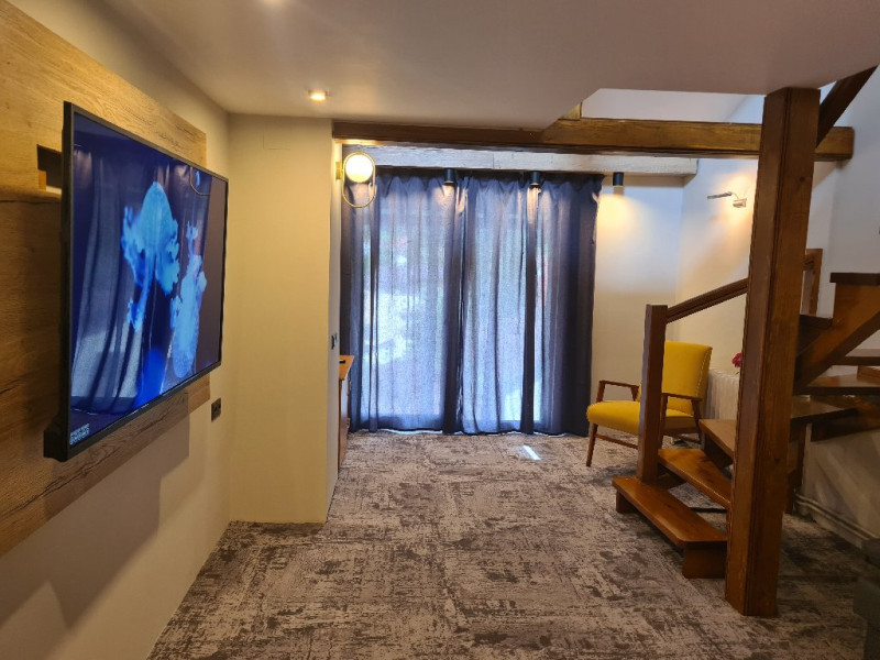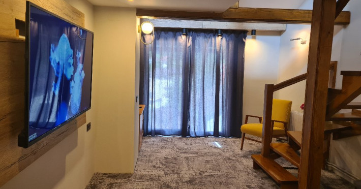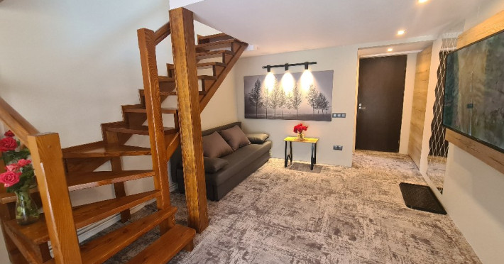 Suita family dispune de living cu canapea extensibila iar la etaj se afla doua paturi twin.