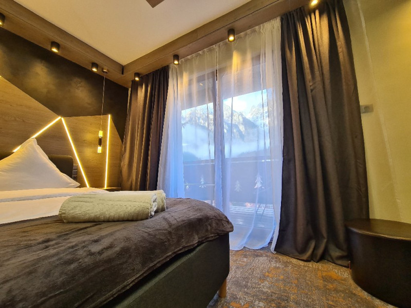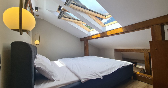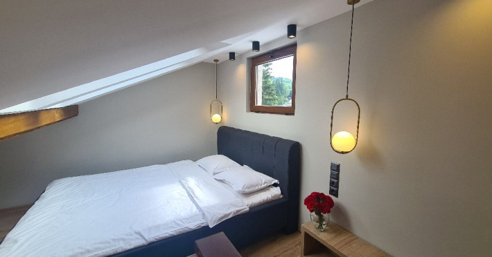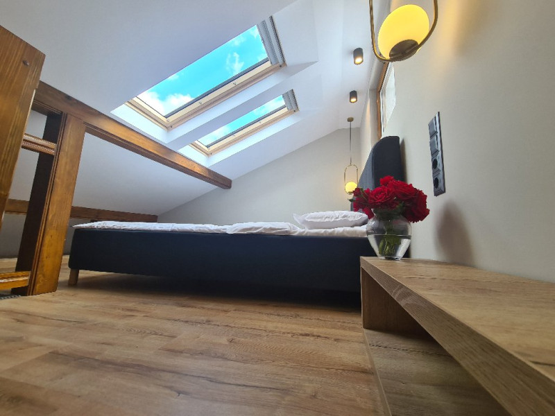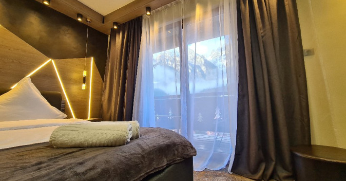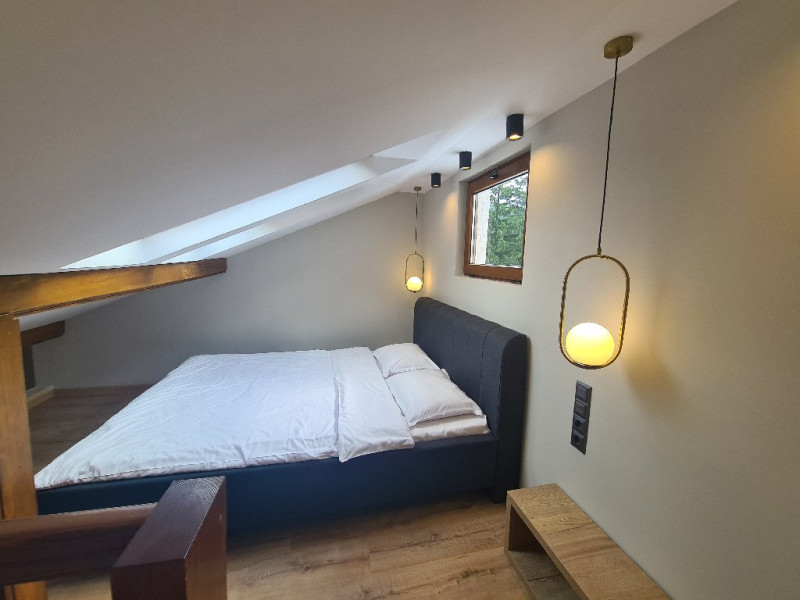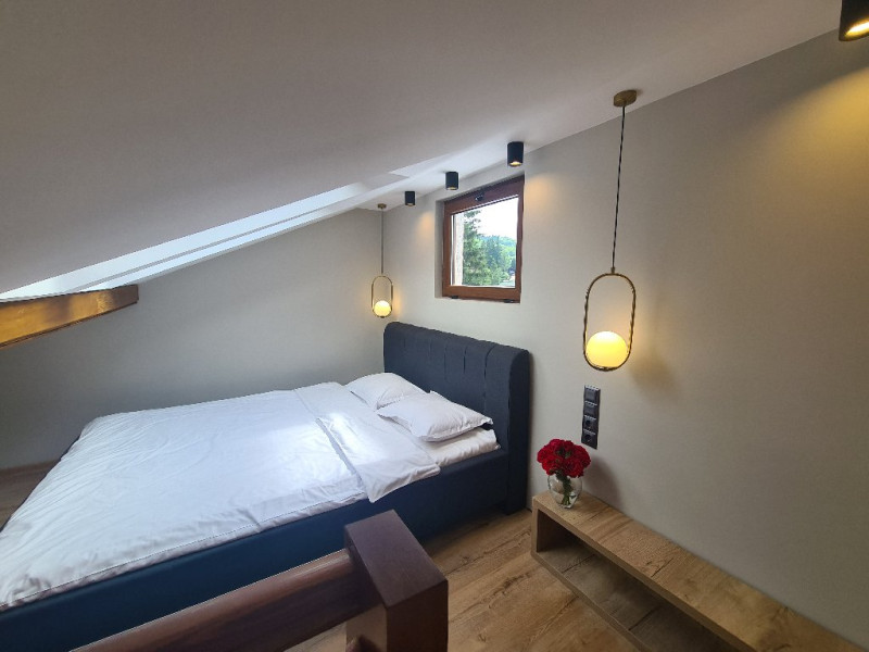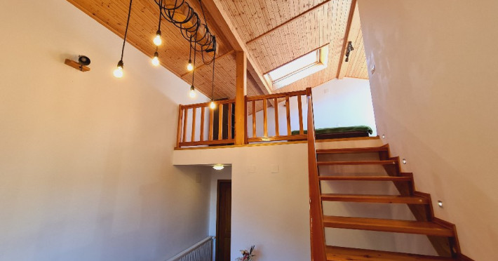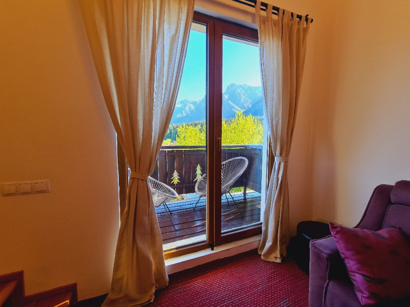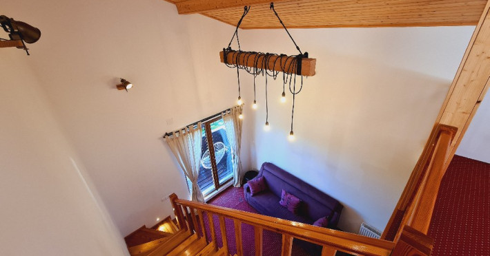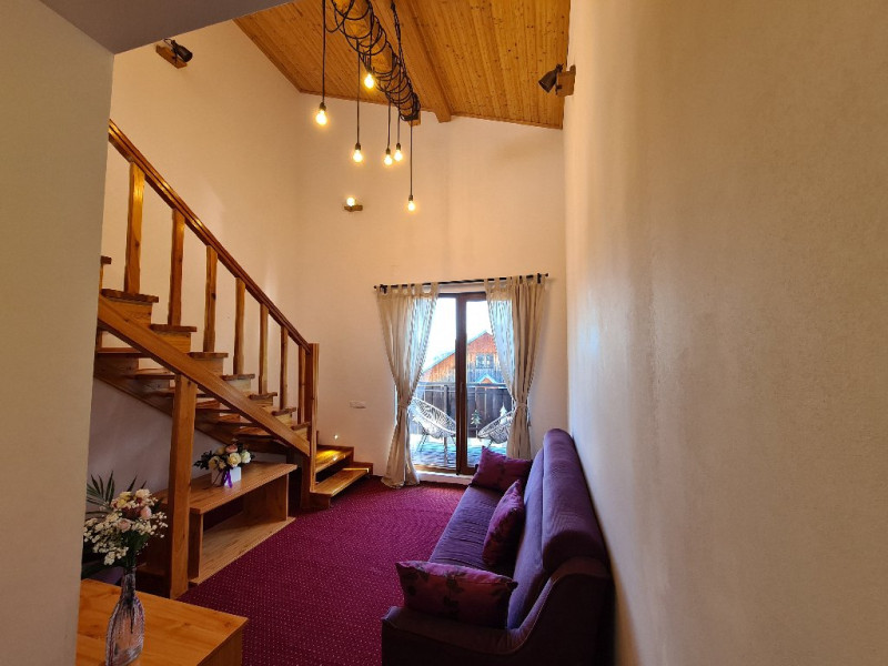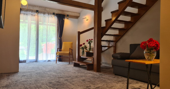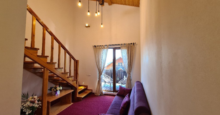 Suita Eagle Nest si suita Sky View dispun de living cu canapea extensibila iar la etaj se afla dormitorul.