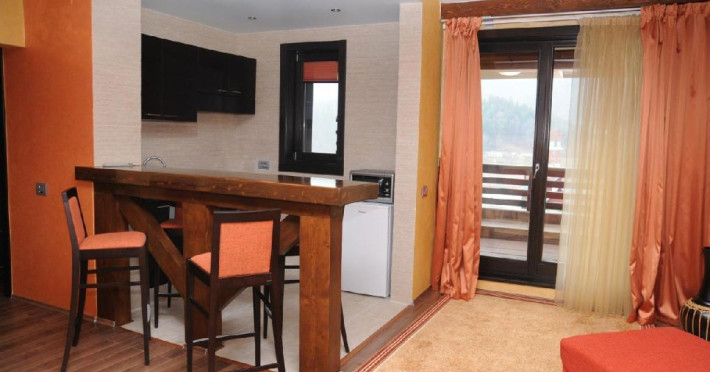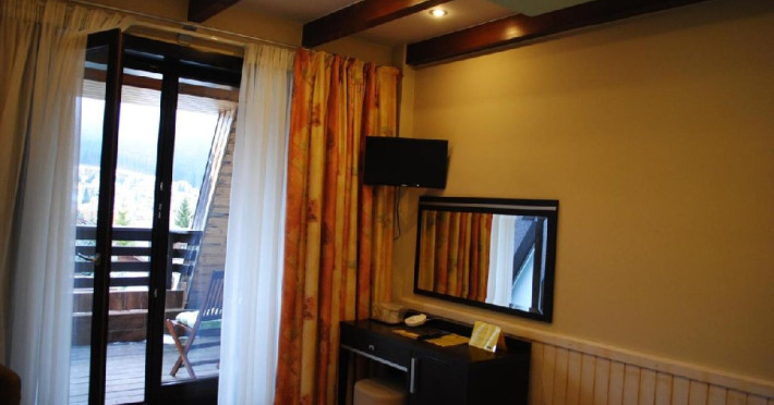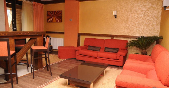 Facilitati: Balcoane dotate cu scaune, fotolii si masute, vedere frontala catre munte, canapea extensibila in living, baie cu cada tip jacuzzi.