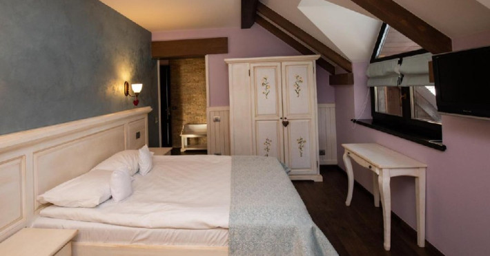 Camera dubla FREY, este situata la nivelul II al Vilei avand o suprafata de 22 mp, ofera o vedere linistitoare catre padure.