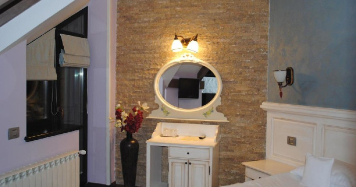 Camera dubla ALBA, situata in partea din spate a Vilei, la parter, camera este compusa din dormitor cu pat matrimonial si canapea extensibila. Suprafata totatala a camerei este de aproximativ 43 mp. Structura ideala pentru o familie cu unul - doi copii. Accesul este privat si se face urcand la nivelul 1 si ocolind cladirea prin dreapta .