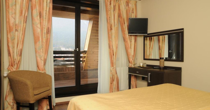 Camerele duble standard cu pat matrimonial sau twin beneficiaza de o vedere laterala catre Muntii Bucegi.
