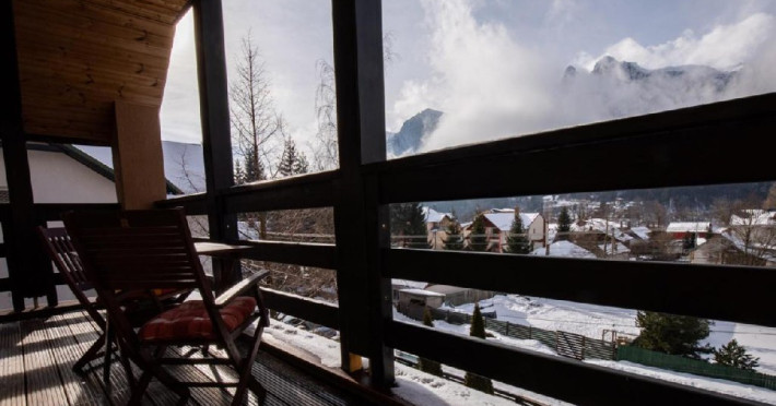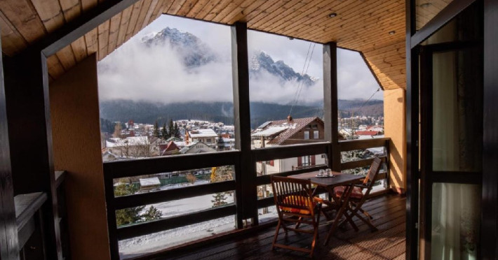 Facilitati: balcon dotat cu scaune, vedere laterala catre munte.