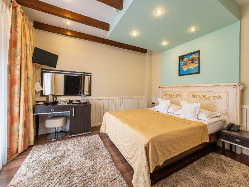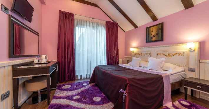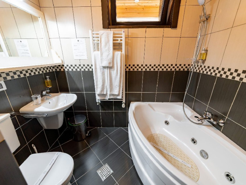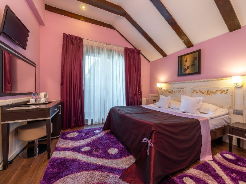 Camerele Duble Standard au pat matrimonial sau doua paturi twin si beneficiaza de o vedere laterala catre Muntii Bucegi.