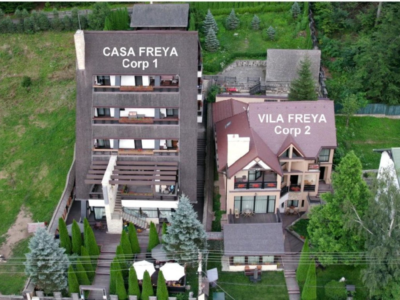 INFORMATII GENERALECasa Freya face parte din Complex Freya alaturi de Casa Freya 2 si este situata in cartierul Zamora al statiunii Busteni, cu vedere catre intregul lant muntos Bucegi si in mod special a Crucii de pe Varful Caraiman.