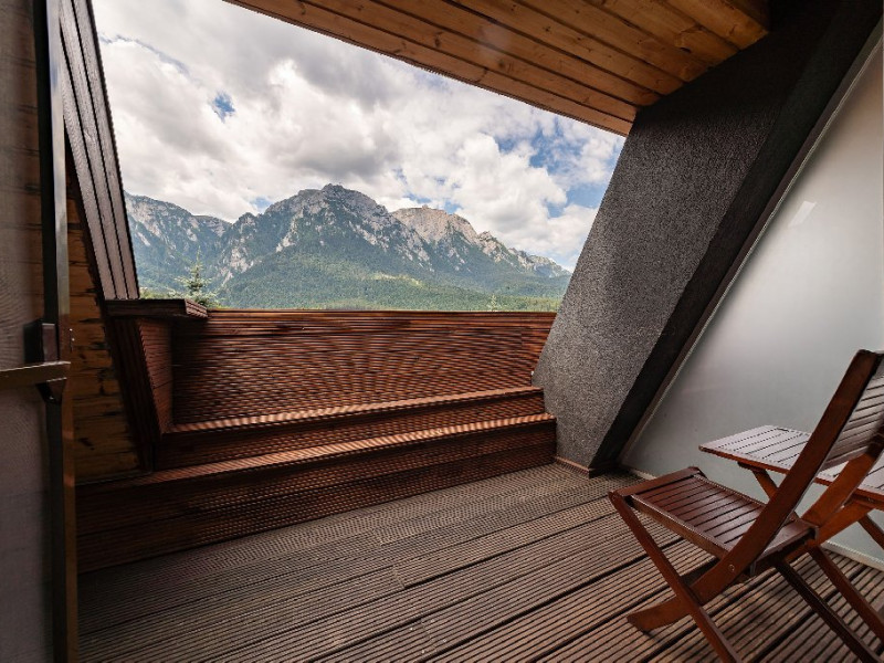 Camerele Duble cu vedere catre munte au pat matrimonial si ofera o vedere spectaculoasa catre Varful Caraiman.