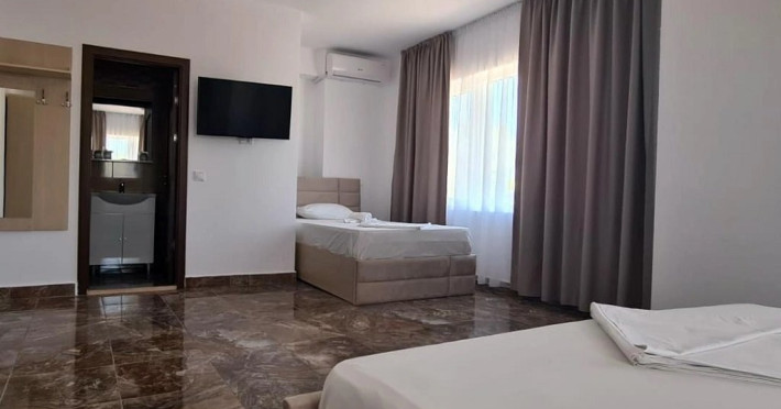 Camerele family sunt dotate cu un pat matrimonial si un pat single, tv, aer conditionat, mini frigider si dulap.