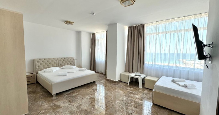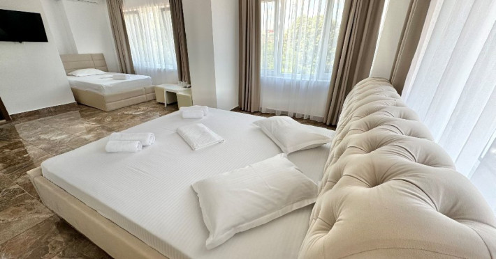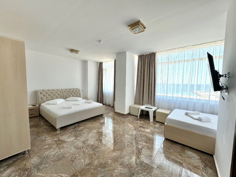 Vila ofera 6 camere duble cu vedere la mare, 6 camere duble cu vedere la statiune, 2 camere family cu vedere la mare, 2 duble family cu vedere la statiune si 4 apartamente.