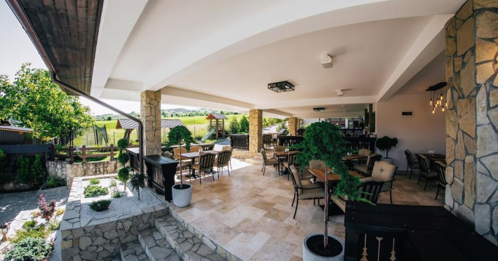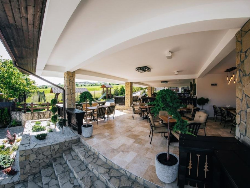 Bar/Lounge - 30 locuri; 2 sali de conferinte - 40 locuri / 20 locuri; Gradina de vara cu terasa si foisor 40 locuri; Loc de joaca amenajat; Parcare proprie 20 locuri.Tarifele nu sunt valabile in perioada Sarbatorilor ( Paste, Craciun , Revelion, etc.)