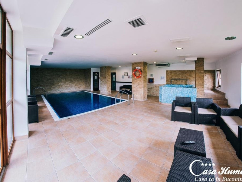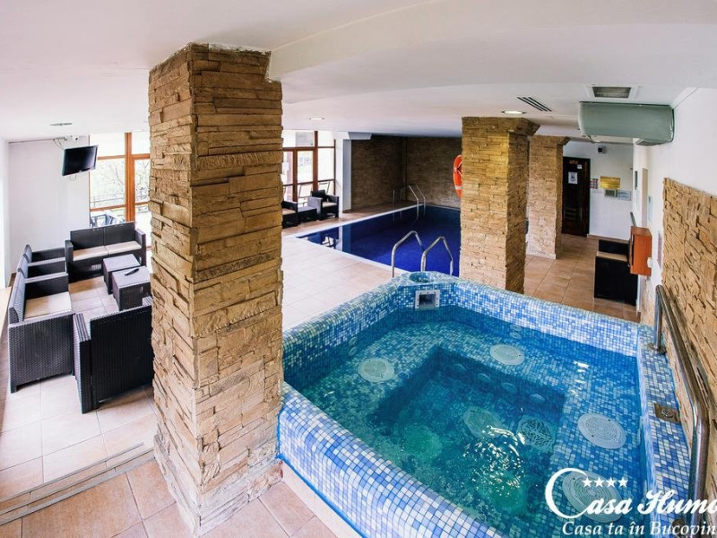 Cablu TV Internet wireless Telefon Mini-bar Baie Balcon propriu Incalzire central Servicii spalatorie (la cerere)Singura pensiune din statiunea Gura Humorului care va ofera pentru relaxare si destindere centru spa cu piscina, jacuzzi, sauna, masaj.