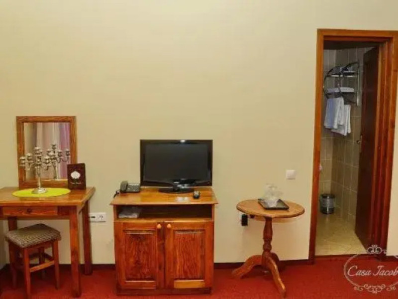 Want to save money while travelling? Its easy: hotel Casa Iacob is located in Brasov. This hotel is located 1 km from the city center.Want to save money while travelling? Its easy: hotel Casa Iacob is located in Brasov. This hotel is located 1 km from the city center.You can stop by the bar. Its time to have a nice meal! Stop by the restaurant. Have a cup of coffee in the cafe and, who knows, maybe its going to be the best one in the city. Free Wi-Fi on the territory will help you to stay on-line.Specially for tourists who travel by car, theres a free parking zone. If you travel by car, you can park in a parking zone. For the free movement around the city, the hotel offers a transfer for you. There are other services available for the guests of the hotel. For example, a concierge.The staff of the hotel will be happy to talk to you in English and Spanish.You can stop by the bar. Its time to have a nice meal! Stop by the restaurant. Have a cup of coffee in the cafe and, who knows, maybe its going to be the best one in the city. Free Wi-Fi on the territory will help you to stay on-line.Specially for tourists who travel by car, theres a free parking zone. If you travel by car, you can park in a parking zone. For the free movement around the city, the hotel offers a transfer for you. There are other services available for the guests of the hotel. For example, a concierge.The staff of the hotel will be happy to talk to you in English and Spanish.Heres what youll find in the room to have a rest after a long day: a TV and a mini-bar. Please note that the listed services may not be available in all the rooms.Heres what youll find in the room to have a rest after a long day: a TV and a mini-bar. Please note that the listed services may not be available in all the rooms.Guests are required to show a photo identification and credit card upon check-in. Please note that all Special Requests are subject to availability and additional charges may apply. In response to Coronavirus (COVID-19), additional safety and sanitation measures are in effect at this property. Food beverage services at this property may be limited or unavailable due to Coronavirus (COVID-19). As a result of Coronavirus (COVID-19), this property has temporarily suspended its shuttle services. Due to Coronavirus (COVID-19), this property is taking steps to help protect the safety of guests and staff. Certain services and amenities may be reduced or unavailable as a result. Due to Coronavirus (COVID-19), this property has reduced reception and service operating hours. In accordance with government guidelines to minimise transmission of the Coronavirus (COVID-19), this property may request additional documentation from guests to validate identity, travel itinerary and other relevant information, during dates where such guidelines exist.Datorita dinamicitatii domeniului disponibilitatea ofertelor se modifica de la un moment la altul. De aceea ofertele sunt valabile in limita locurilor disponibile. Agentia nu este responsabila pentru eventualele neconcordante care pot aparea intre informatiile privind tarifele si alte detalii din site si informatiile primite in agentie. In aceste cazuri vor avea prioritate, intotdeauna, informatiile primite in agentie.