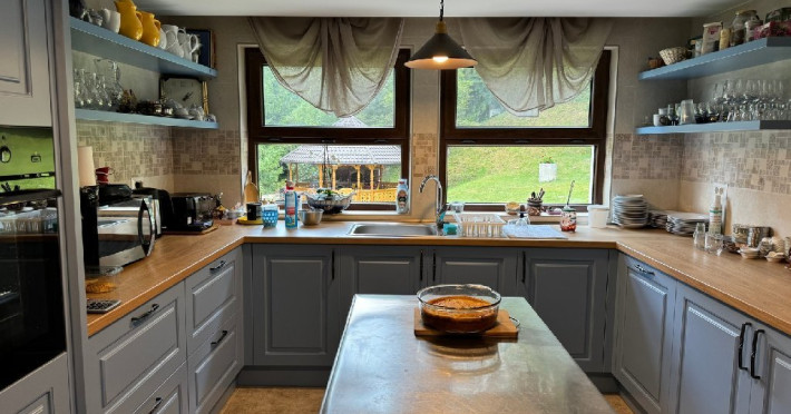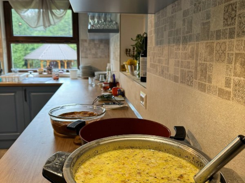 La umbra teiului din curte sau in salon, oaspetii fac buna cunostinta cu savoarea preparatelor culinare bucovinene.