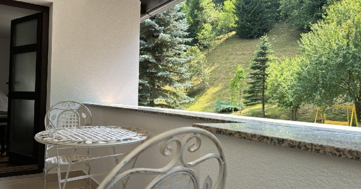 Dimineata incepe la Casa Lucretia cu o prima repriza de aer curat si de soare sanatos, de munte, pe una din terasele deschise.