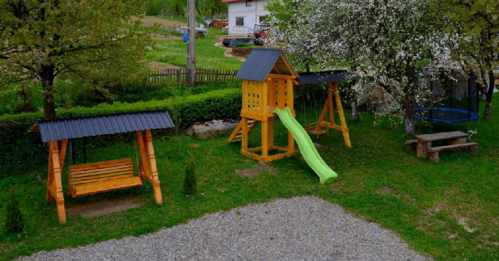Turistii au la dispozitie o bucatarie complet utilata, terasa exterioara, loc de joaca pentru copii, leagan din lemn, cuptor cu gratar inconcujat si loc de relaxare, incalzire centrala, frigider in unitate,TV, Wi-Fi.