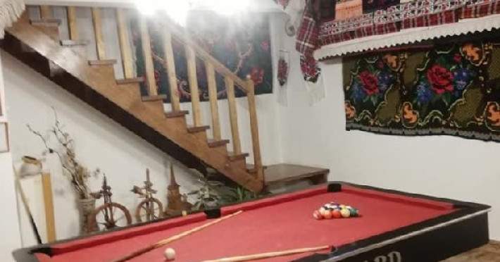 Bucatarie in regim propriu, salon , terasa cu barbeque, loc de joaca pentru copii, billiard, internet wi-fi, parcare proprie