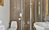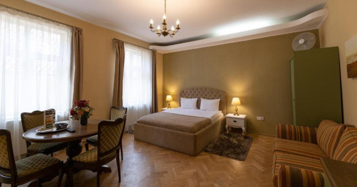 Confortul este completat de pardoseala din parchet masiv, incalzire central, ferestre cu geam termopan. Baia proprie dispune de toaleta, cabina de dus, lavoar si uscator de par. Articolele de toaleta sunt gratuite.