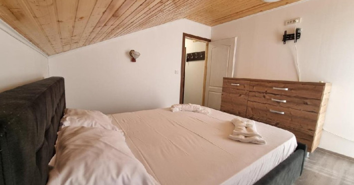 Apartamentul dispune de o camera cu pat matrimonial, o camera cu doua paturi twin si o baie.