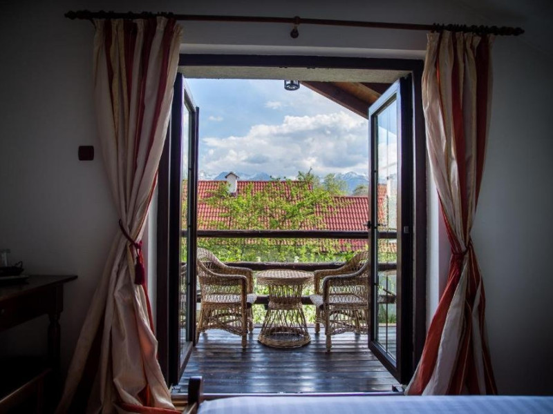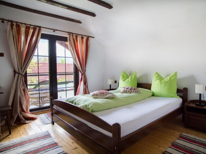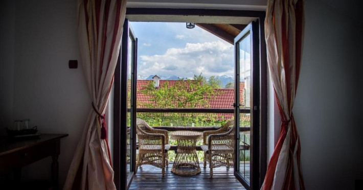 Trei dintre camere au balcon spre curtea interioarã cu o vedere deosebitã spre munii Fãgãra.